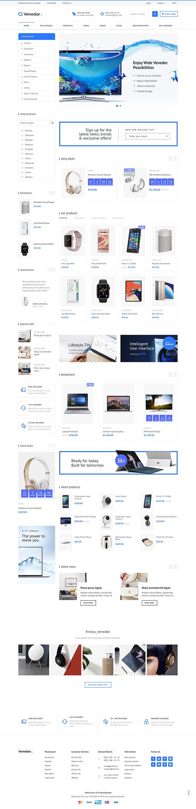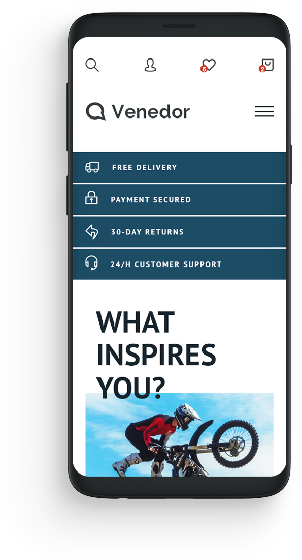 Venedor is mobile friendly for any resolution and any devices. Theme looks fine on all screens.